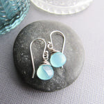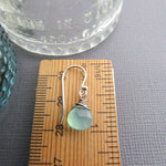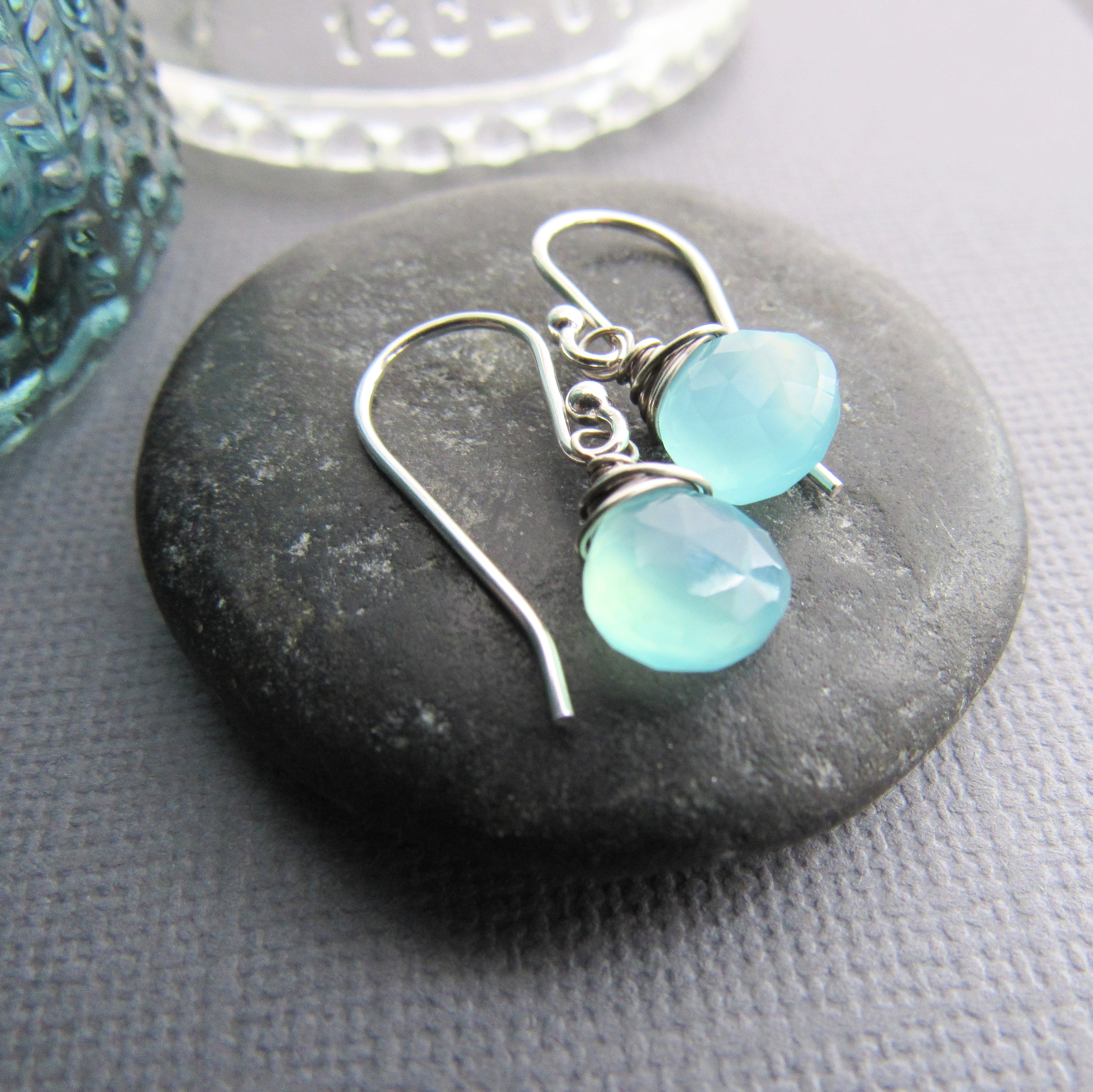 Petite aqua chalcedony earrings are wrapped with oxidized sterling silver.