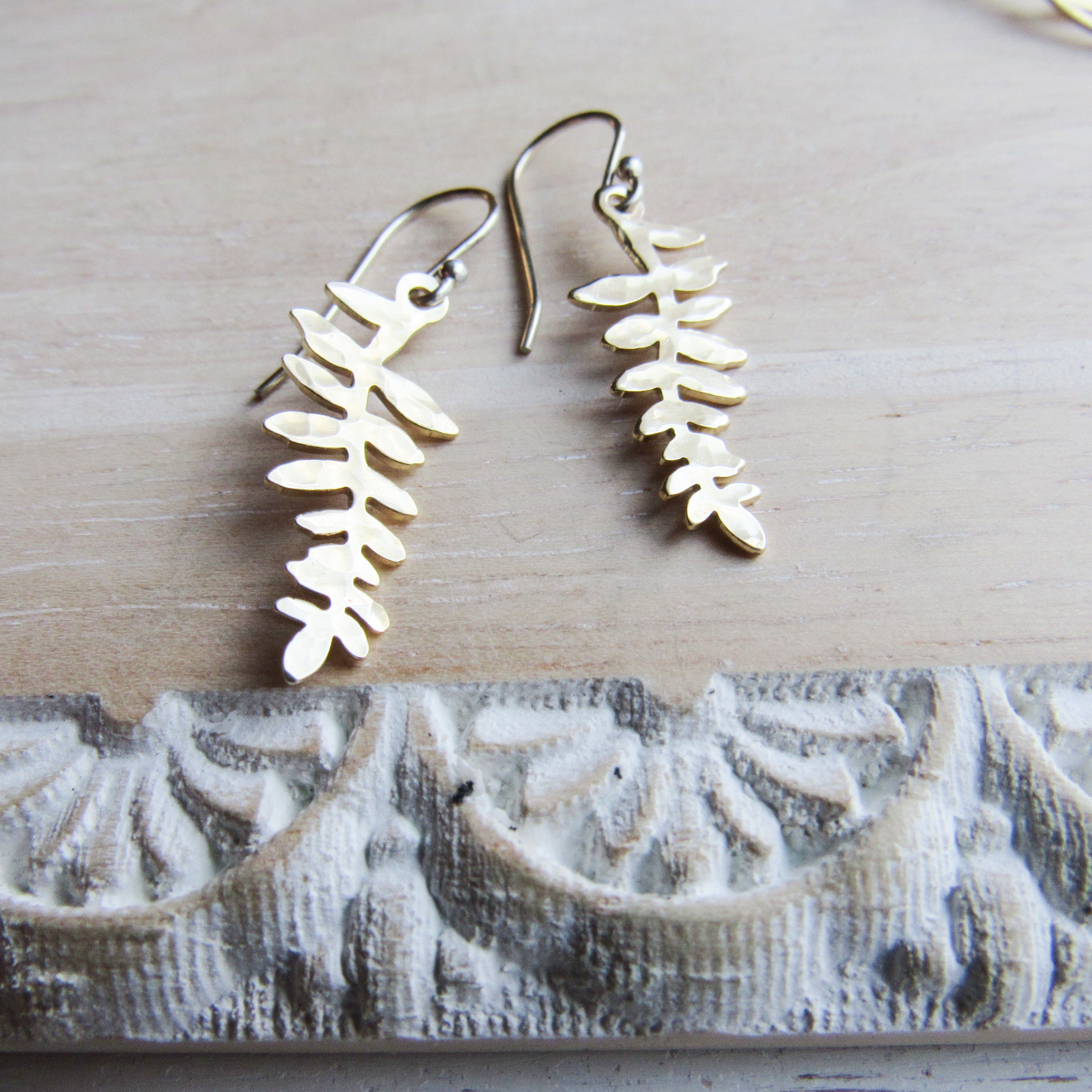 Beautiful Brass Fern Earrings. Unconventional and stylish, they're made of brass and sterling silver mixed metals. Dare to be different and make a bold statement with these standout earrings.