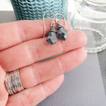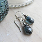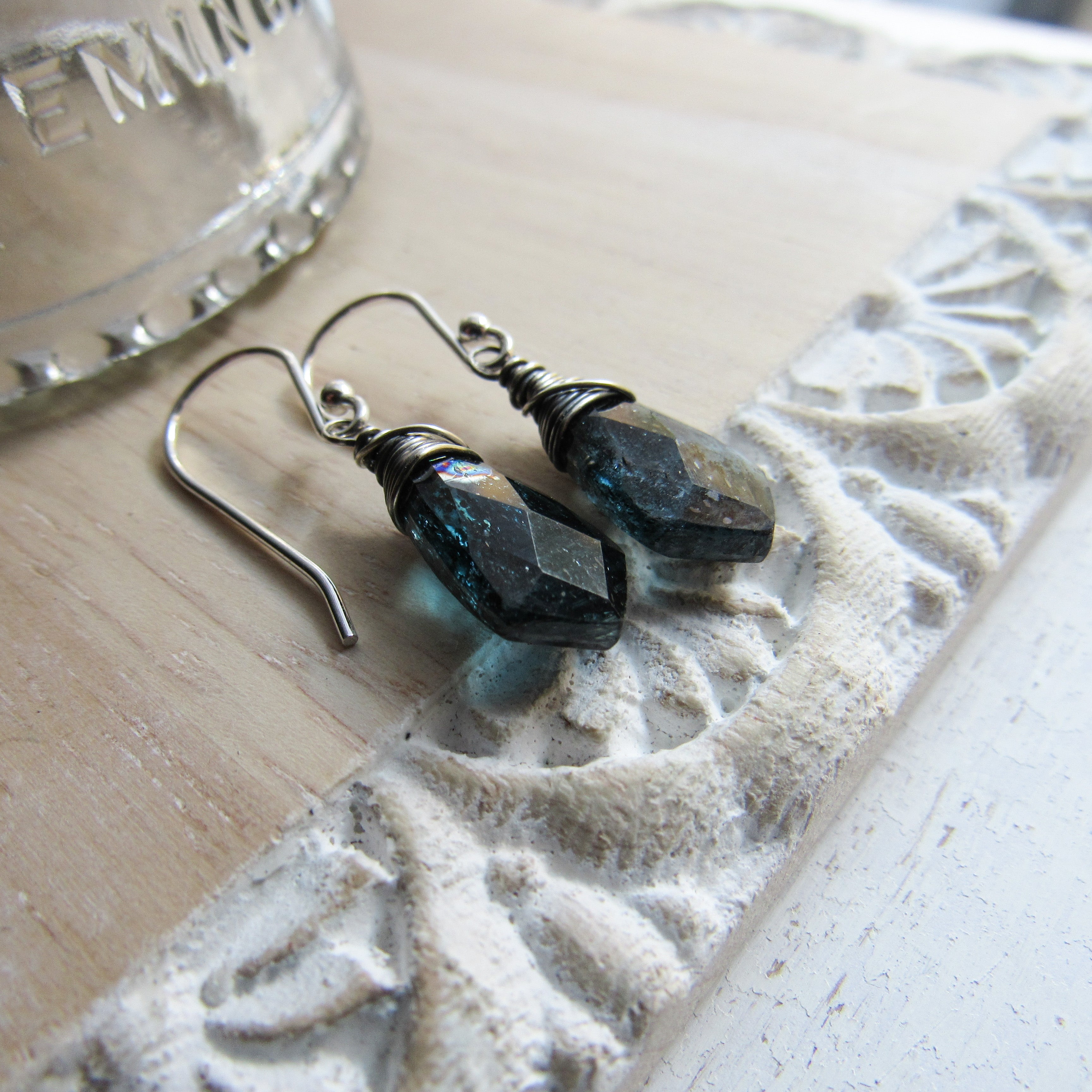 Wrapped with oxidized sterling silver. Sterling silver ear wires.