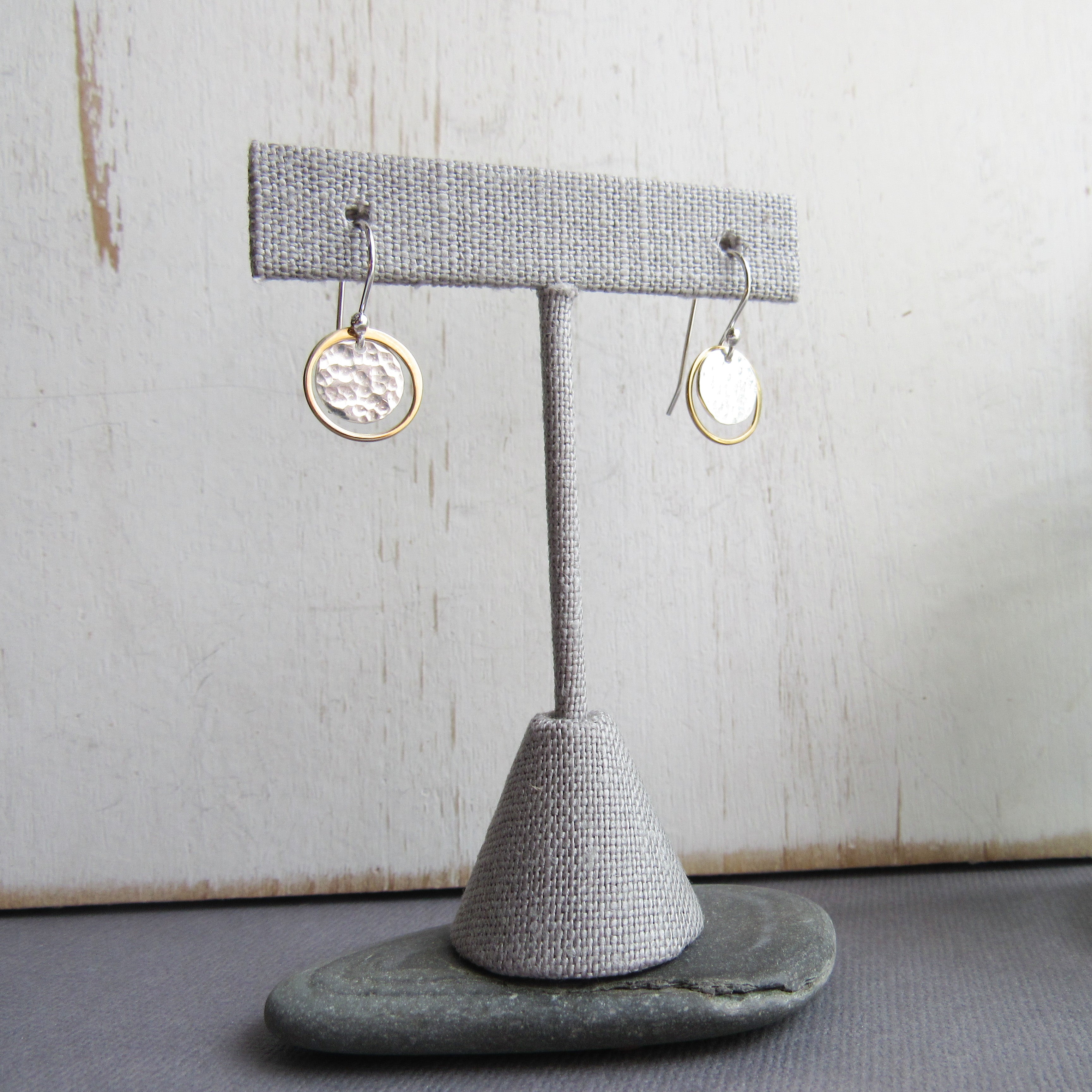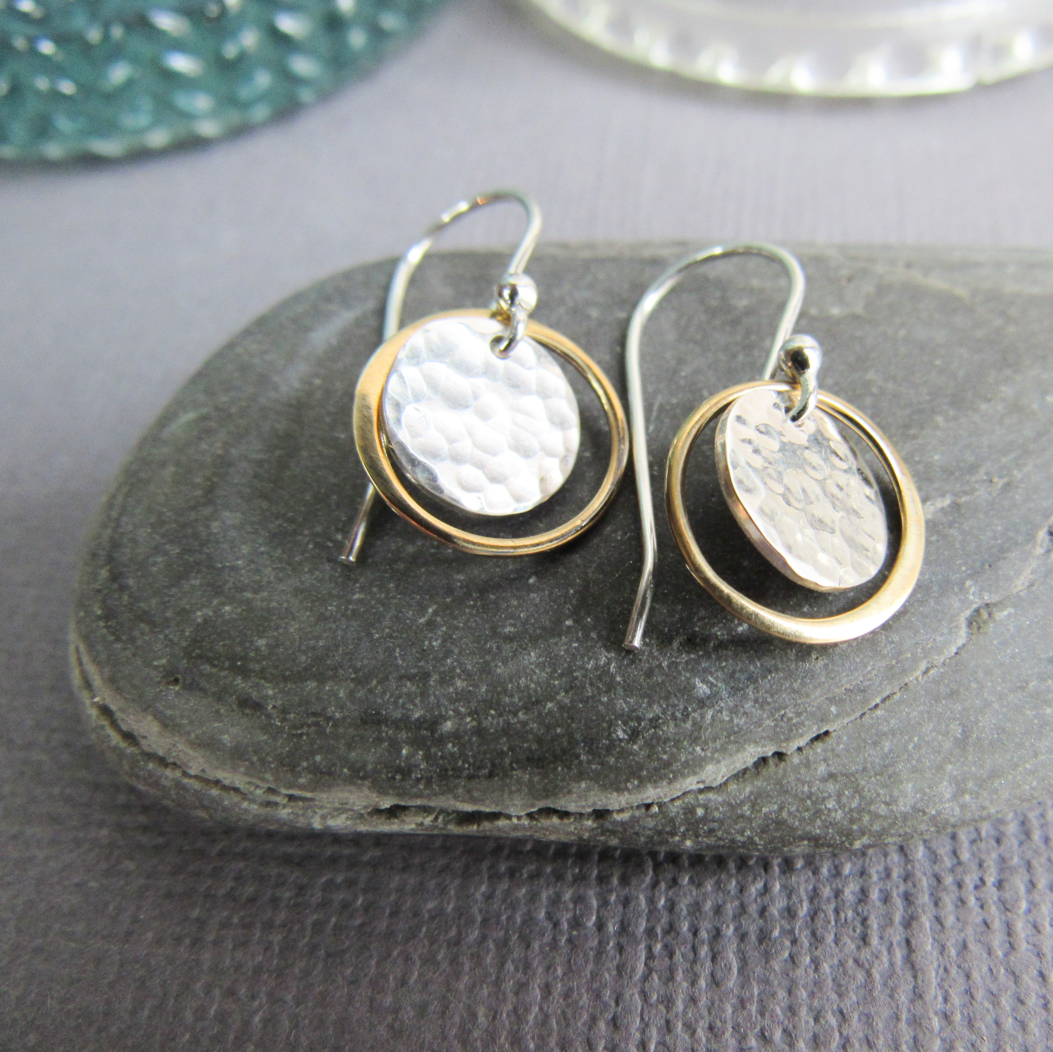 These Gold and Sterling Silver Disc Earrings are a perfect accessory to complete any look. Crafted from both 14K gold- filled and sterling silver, these earrings bring a delicate yet sophisticated elegance to your style. With the harmonious mix of metals, these earrings create a timeless look that can be worn anytime, anywhere.