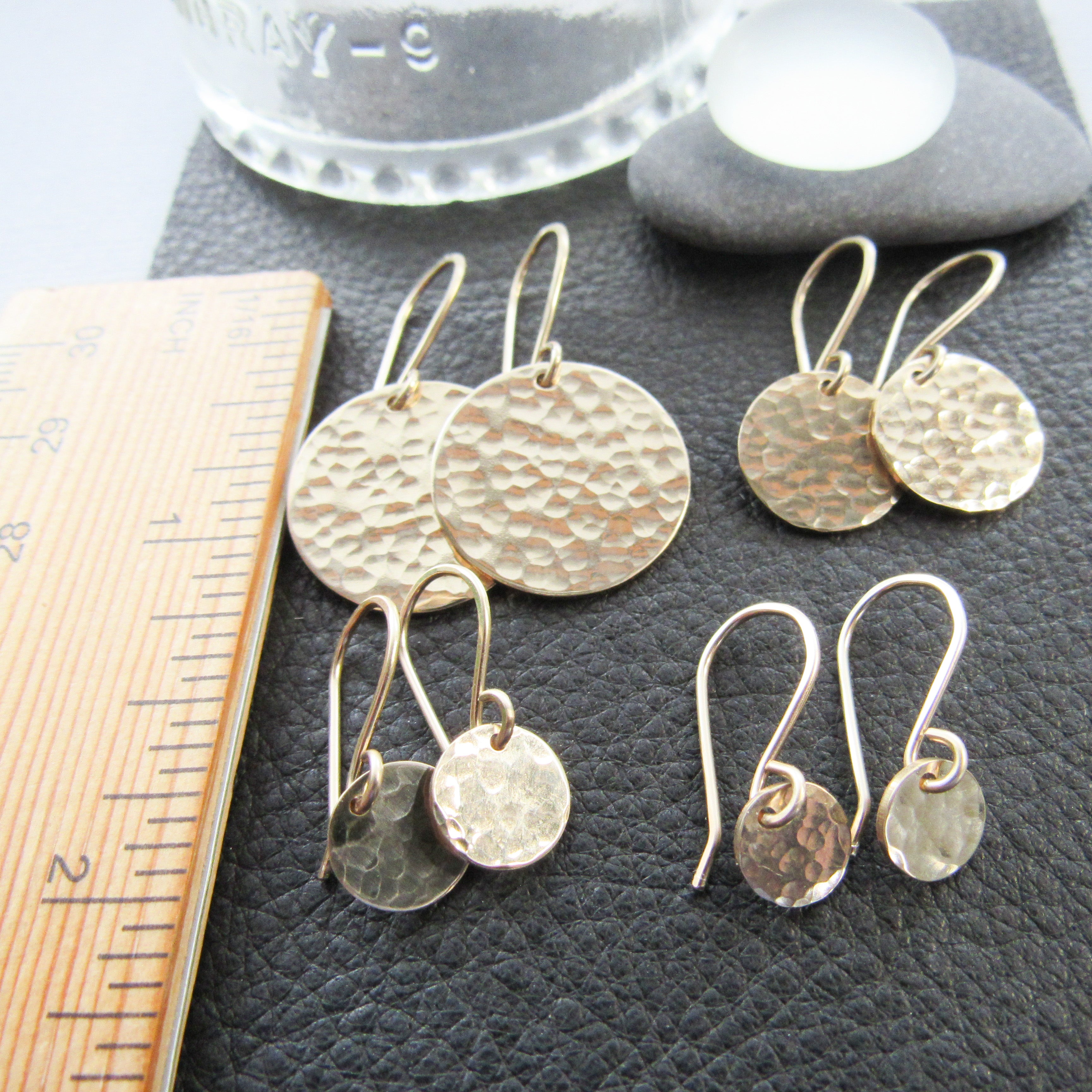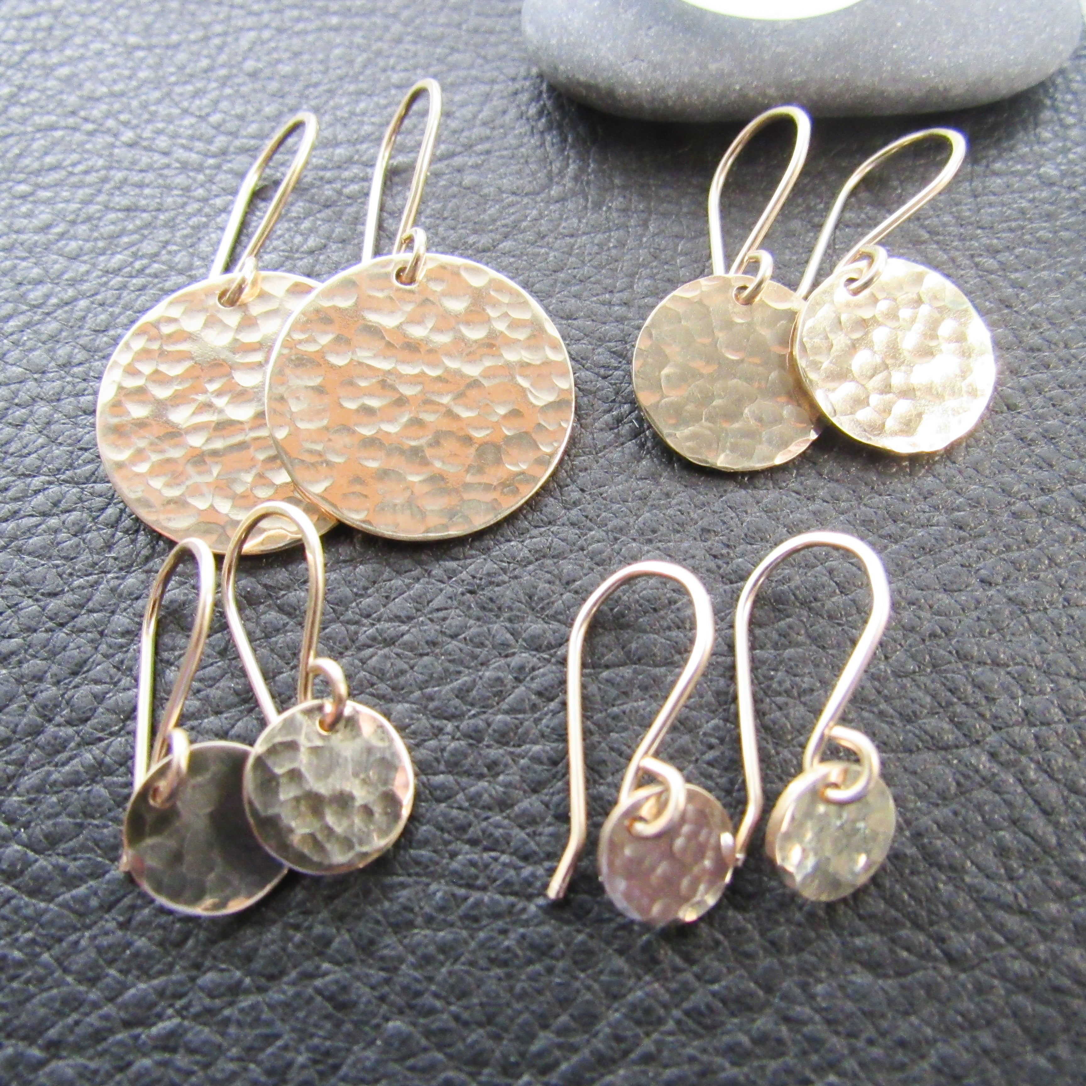 These gold disc earrings feature a hammered metal design, adding subtle texture and a shimmer to any look. The earrings come in three sizes, allowing you to pick the perfect size for you. Add a touch of glamour to your look with these gorgeous earrings.