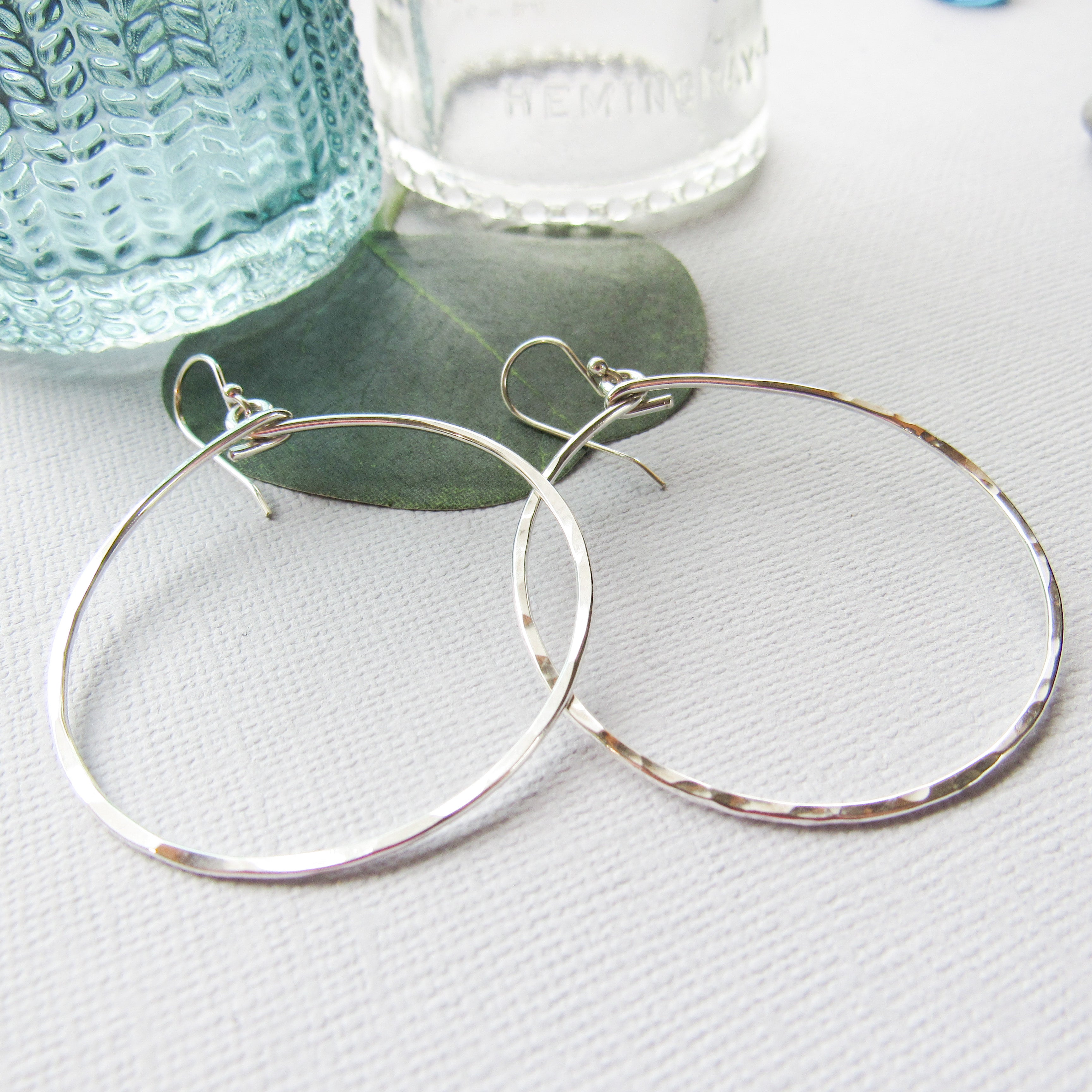 I bought the extra large sterling silver hoops, and they are beautiful, light, and have terrific craftmanship for the hammered hoops! Plus they are a terrific accessory staple:)