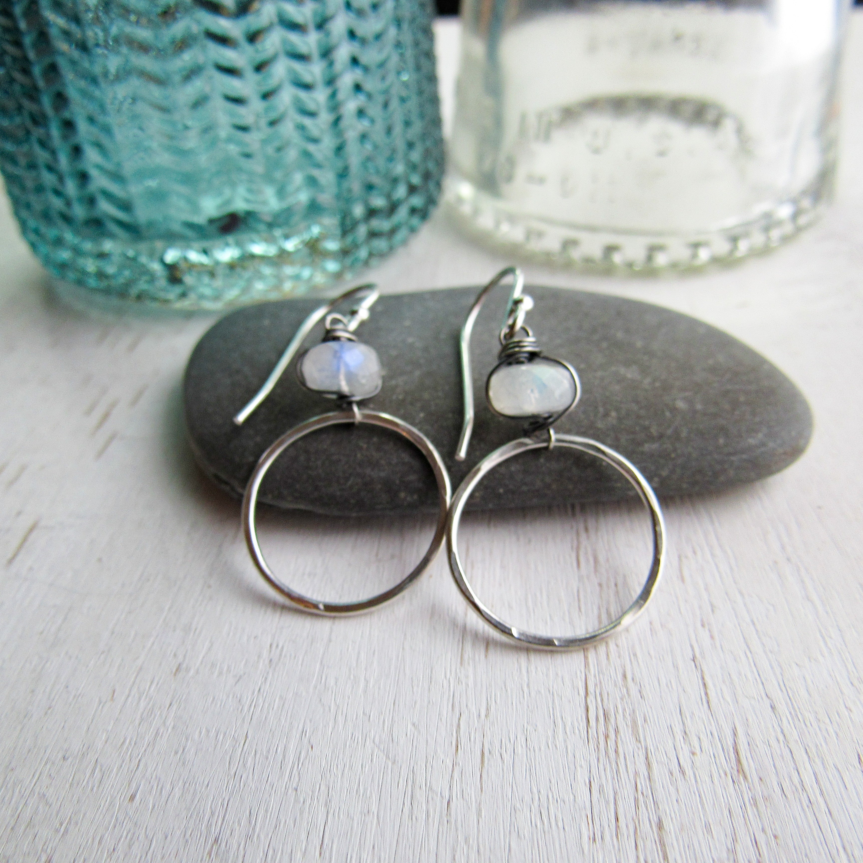 These Rainbow Moonstone Earrings are crafted with a sterling silver circle and feature a iridescent rainbow moonstone. Feel the lunar energy in your daily wear and enjoy the shimmering rainbow hues for everyday magic.