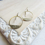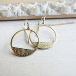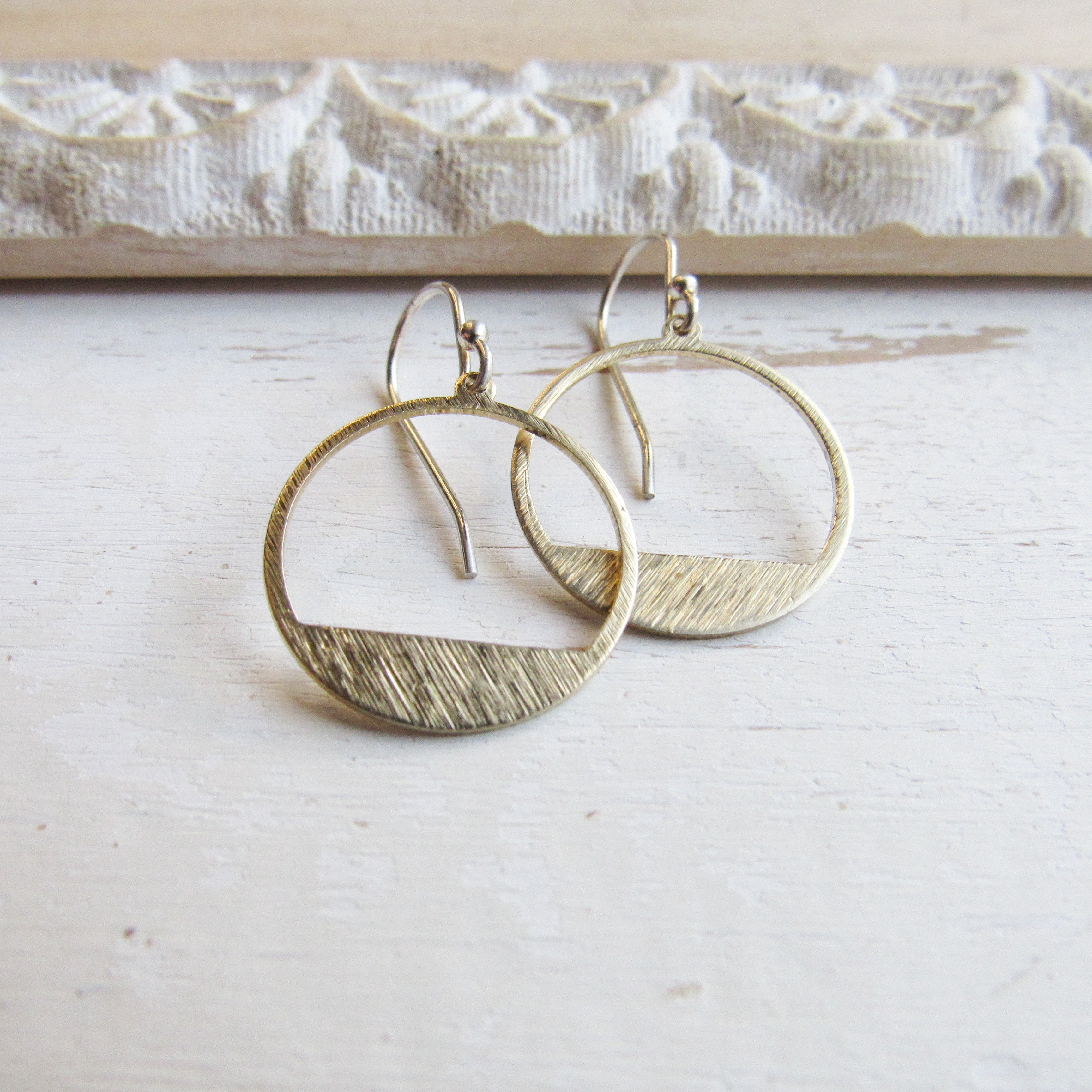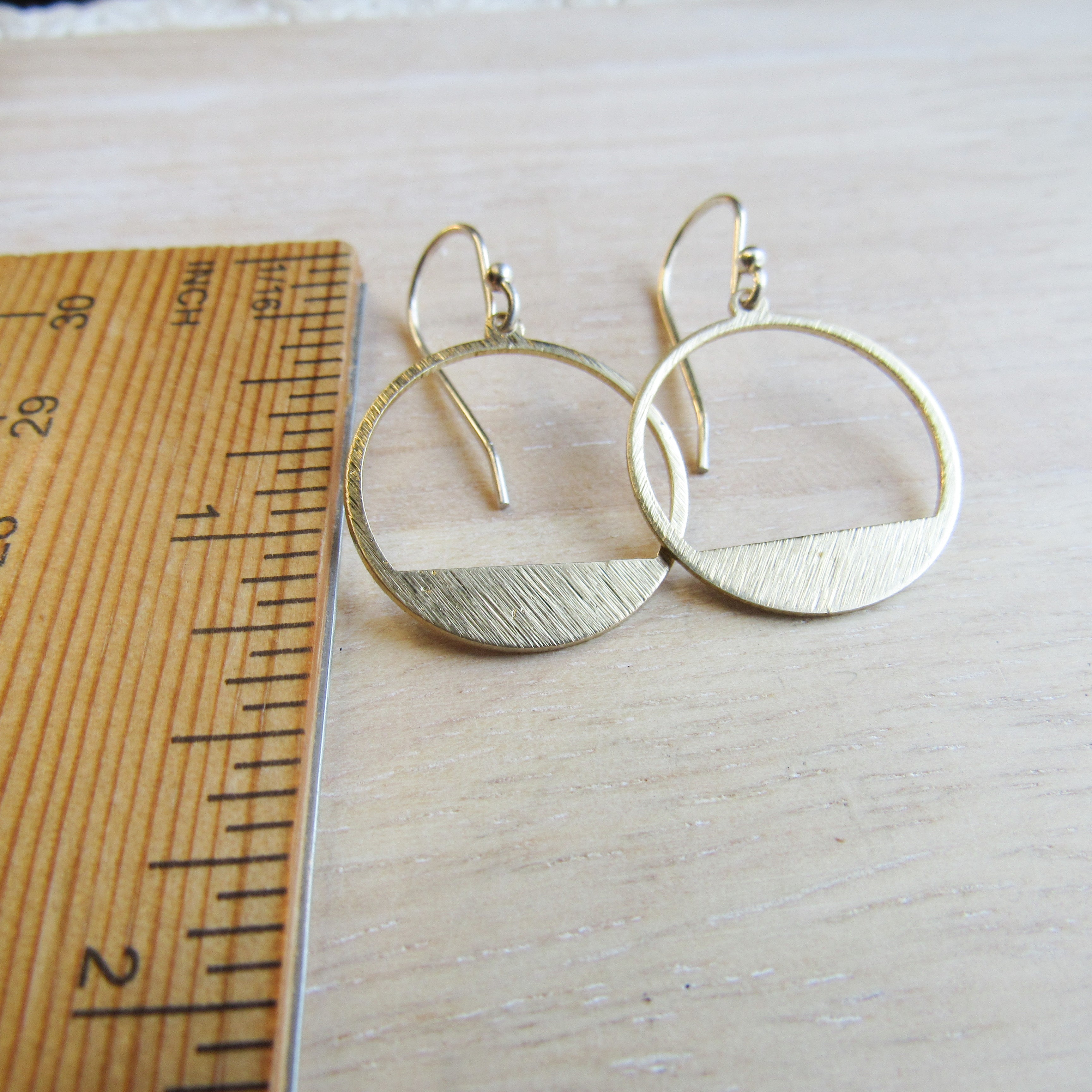 Brass half moon earrings feature a striking brushed finish, crafted from solid brass. The elegant circle shape adds a timeless touch to any outfit. Enjoy a polished look with a simple, classic design.