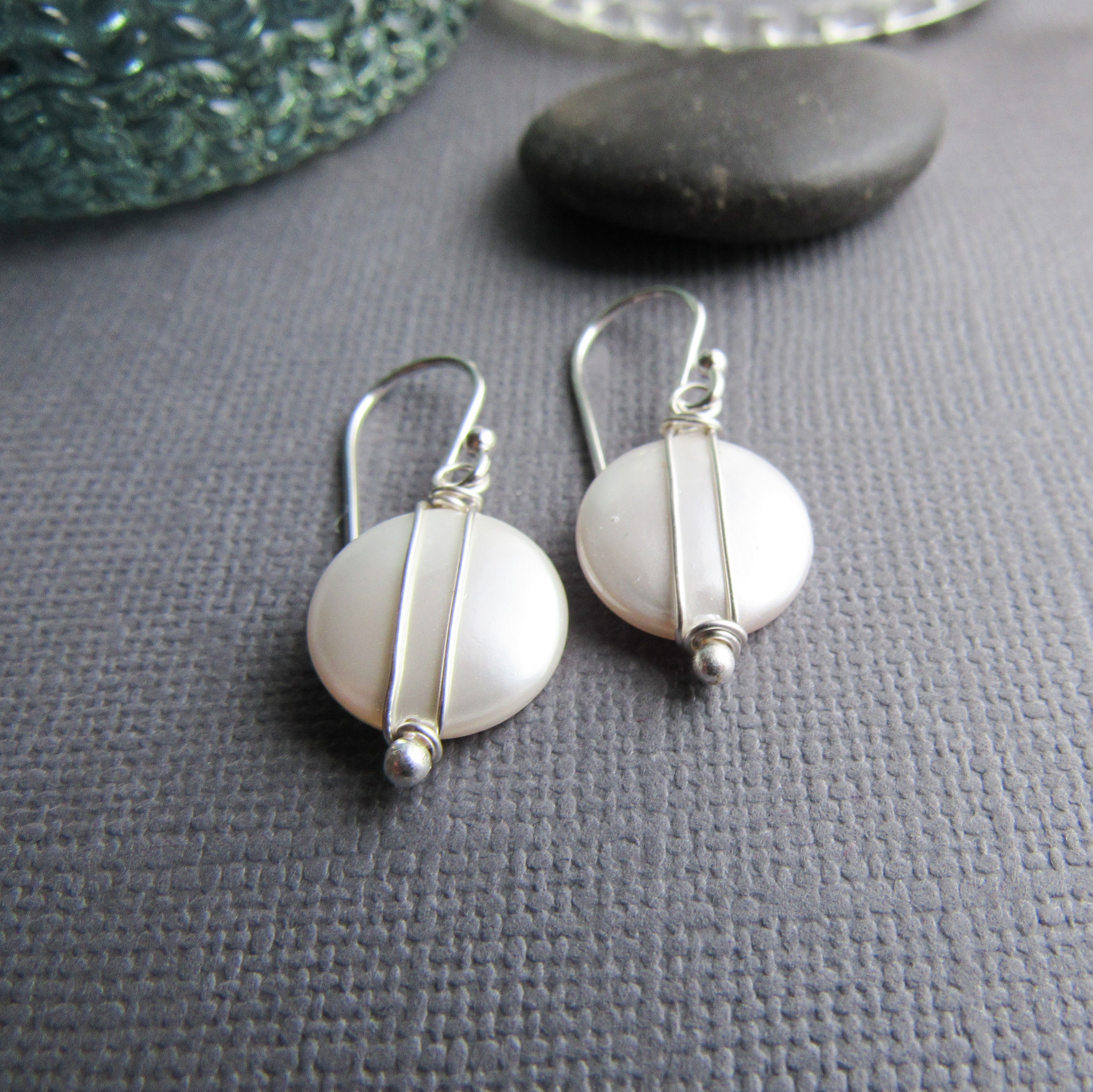 Petite coin pearls are wrapped with fine silver.