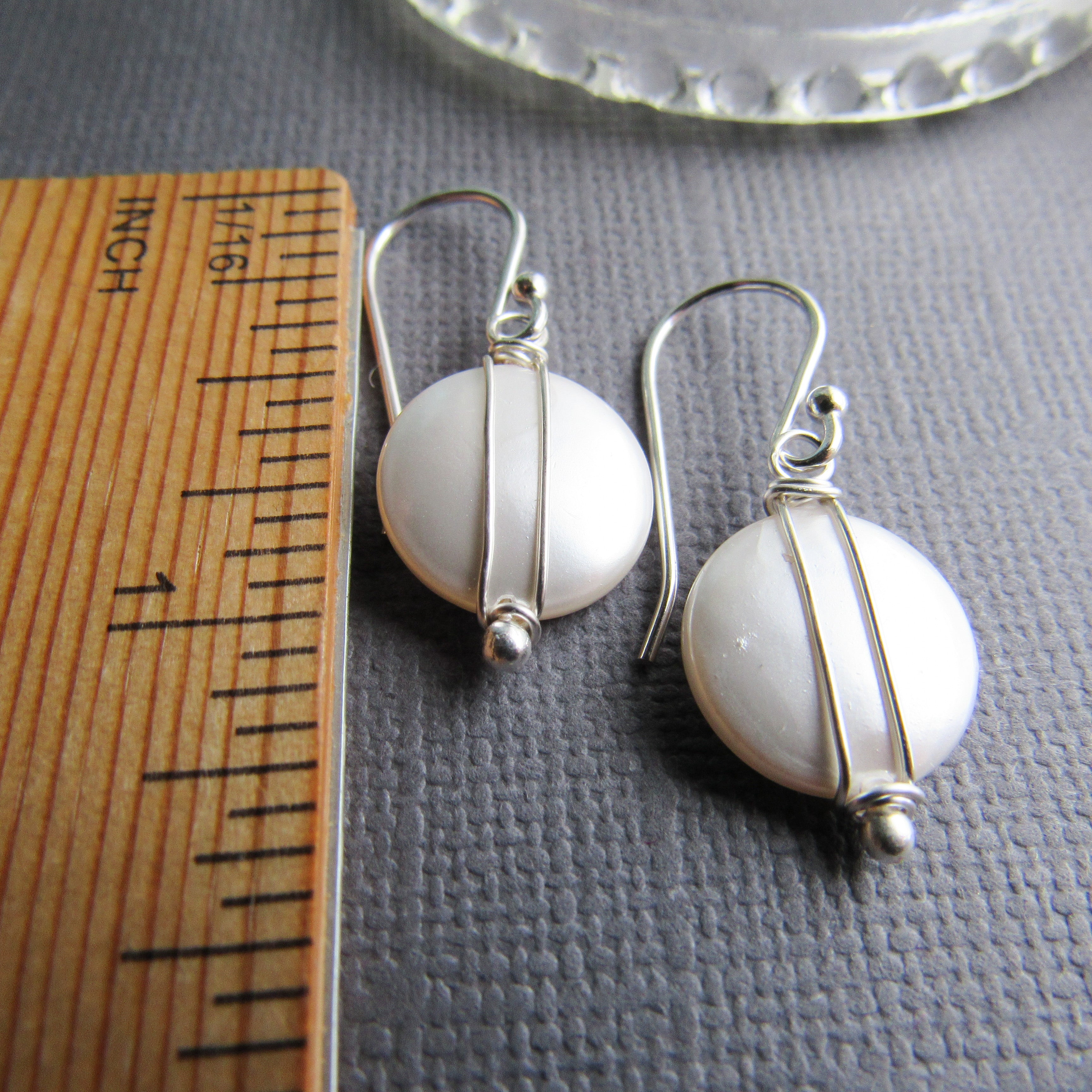 The coin pearls are great and I love the wire wrap around them. The drop is a little longer than I usually wear, but the earrings are very pretty without being fussy, and very versatile.