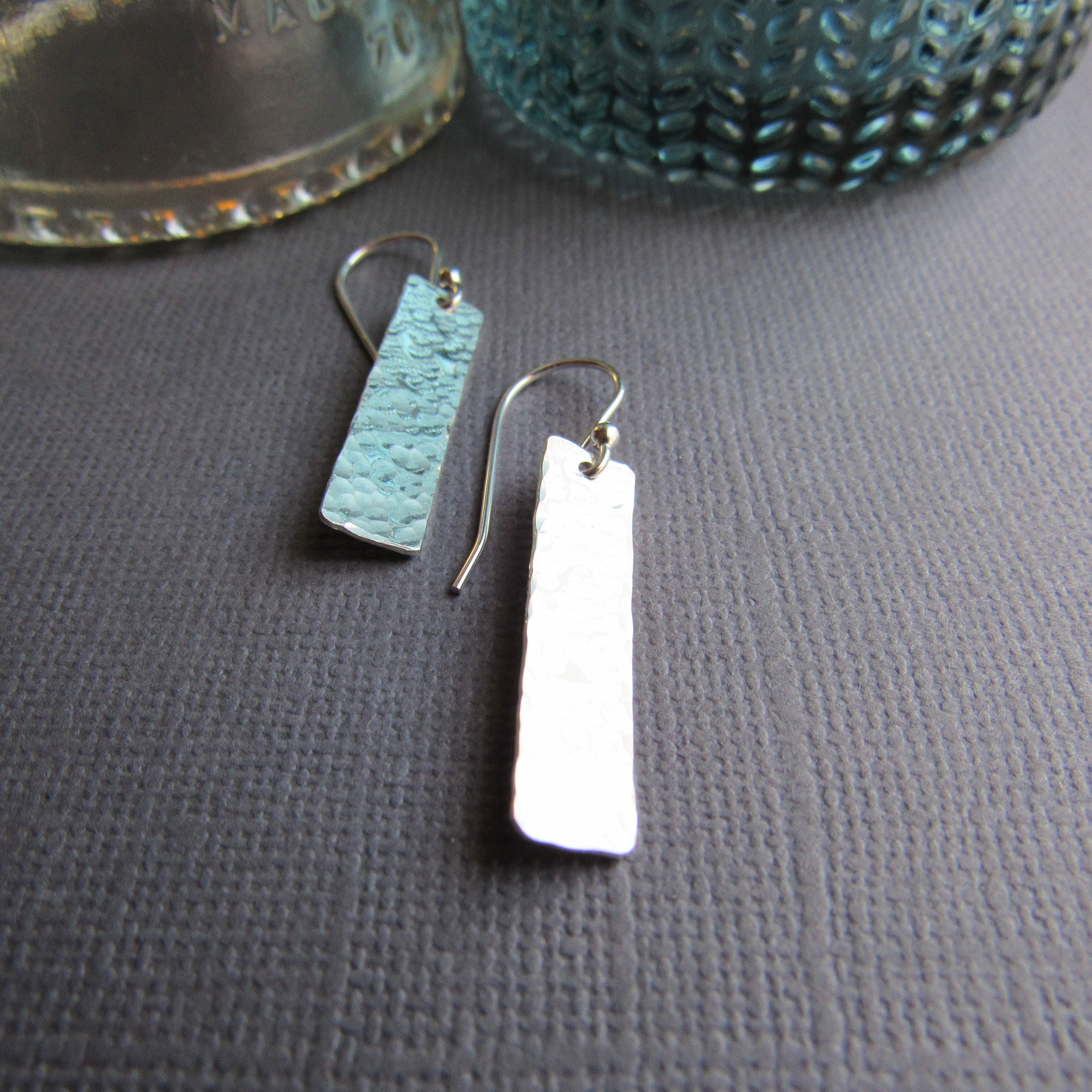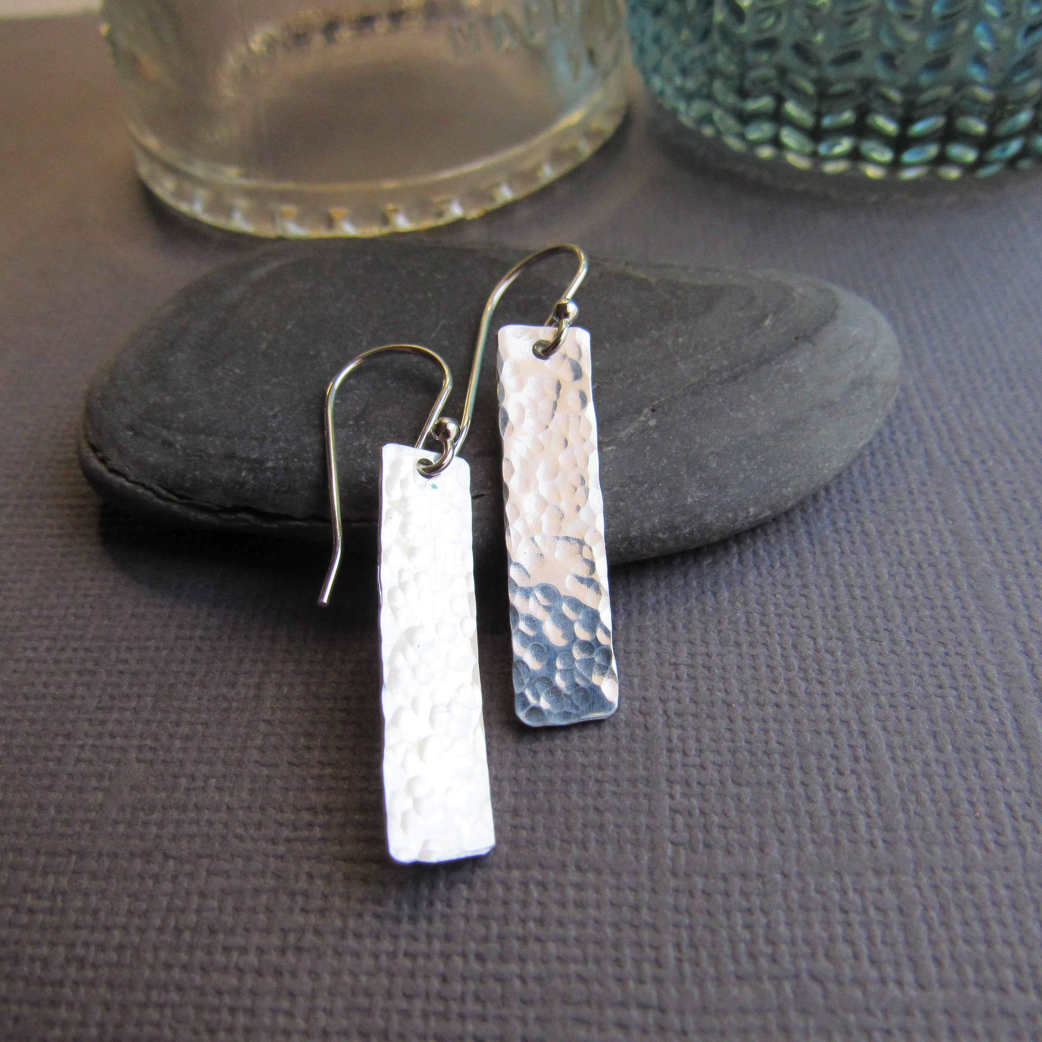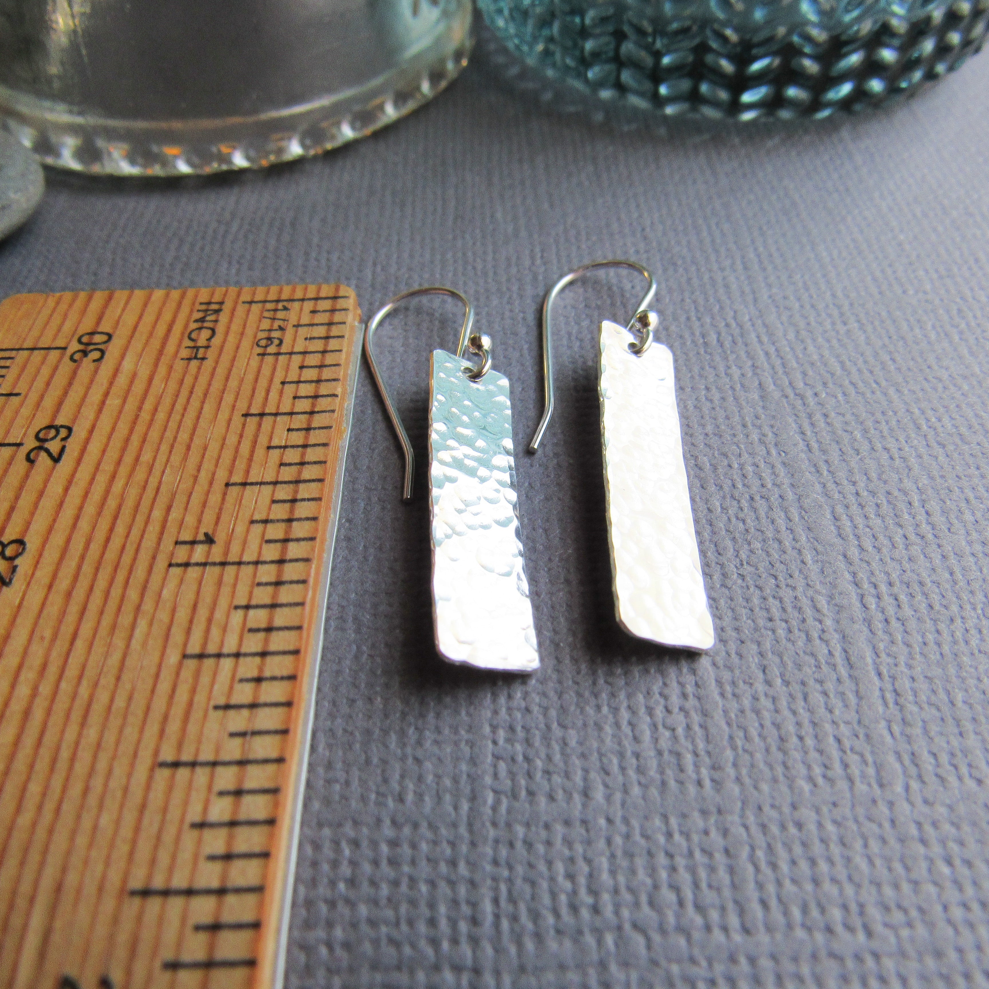 Adorn yourself with our Sterling Silver Bar Earrings. Handcrafted with attention to detail, these sleek and minimalist earrings feature a hammered metal texture.