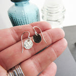 Sterling silver disc earrings are minimalist in design. Textured and polished to a bright shine.