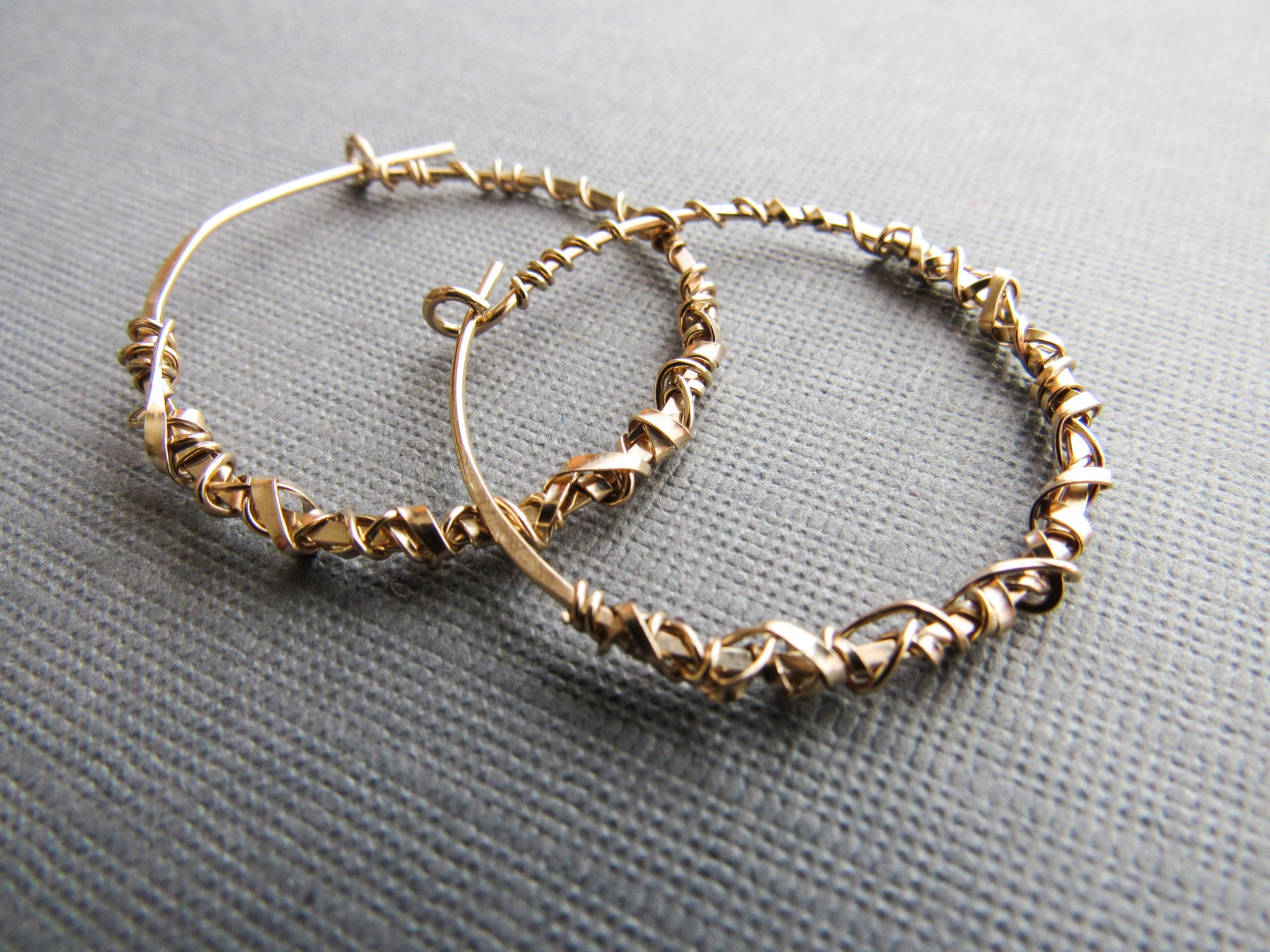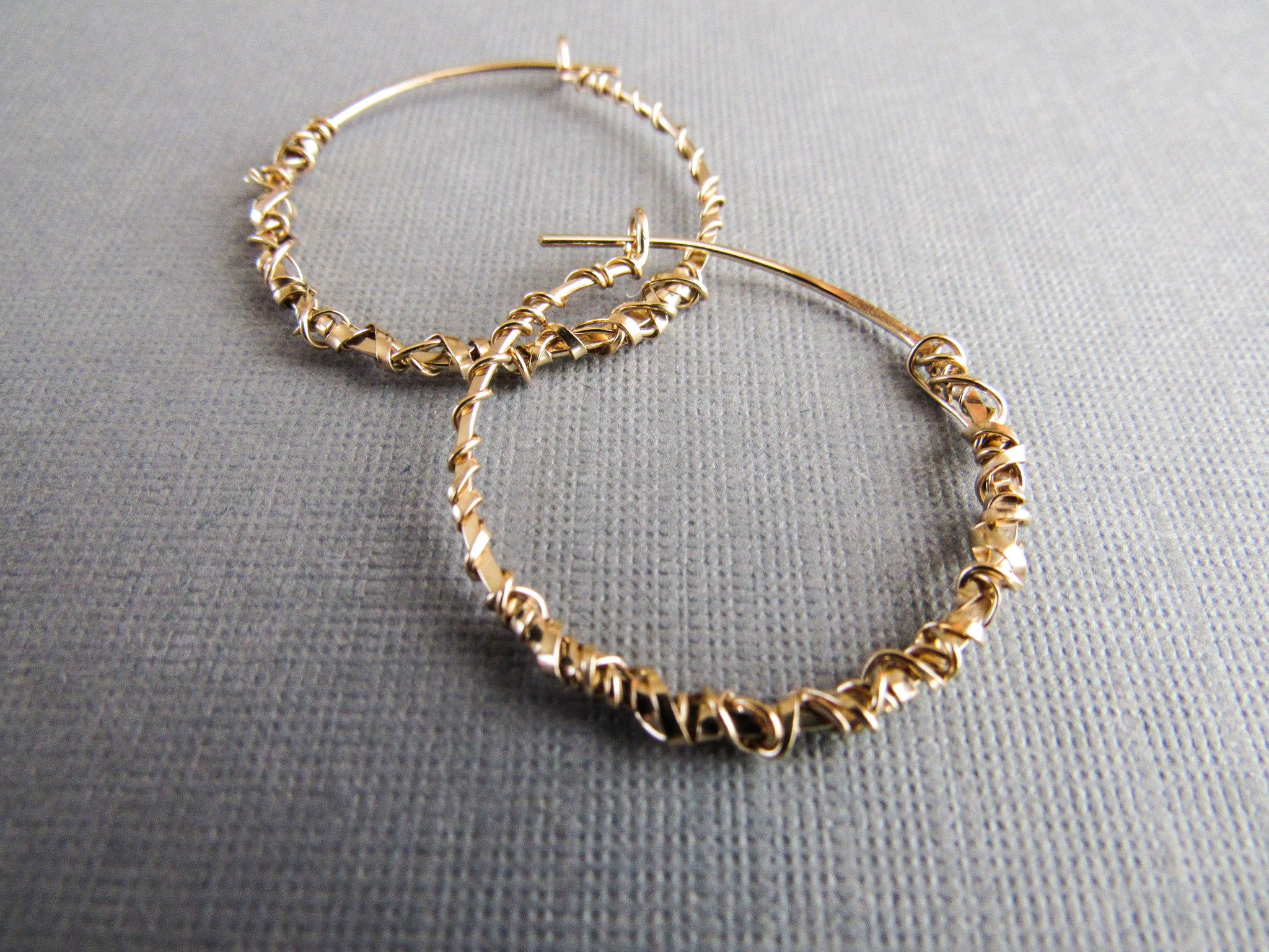 14K Gold Filled Wire Wrap Hoops Earrings are wrapped with a swirl of hammered 14K gold filled wire. Just the right amount of sparkle with a urban hardware look.